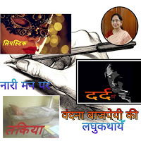 शांता जी के यहाँ एक बड़े से कमरे में बहुत सी महिलायें बैठी थी। अति उत्साह के कारण सुलेखा जी ने दरवाजे से ही मेरा सबसे परिचय करना शरू कर दिया। वो देखो … सबसे डार्क पर्पल लिपस्टिक लगाये हुए है …… वही जो सबसे तेज हँस रही है ,श्रीमती देसाई है उनके अपने ही सगे भाई ने प्रॉपर्टी के चक्कर में इनके पति कि हत्या कर दी थी। और वो जो टूनी रेड लिपस्टिक लगाये है……श्रीमती आहूजा हैं ……. उनका पति इनके साथ नहीं रहता बंगलोर में रहता है किसी और के साथ। वो ब्राउनलिपस्टिक लगाये हैं……श्रीमती मिश्रा ,इनका बेटा तो जब तब इन पर हाथ उठा देता हैं। वो कॉफ़ी लिपस्टिक …….वो मेजेंटा……. वो पिंक …… सुलेखा जी बताती जा रही थी।