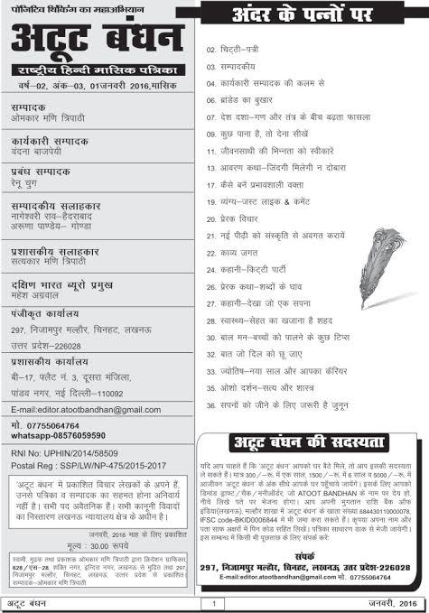 अटूट बंधन वर्ष -२ अंक -३ का कवर पेज