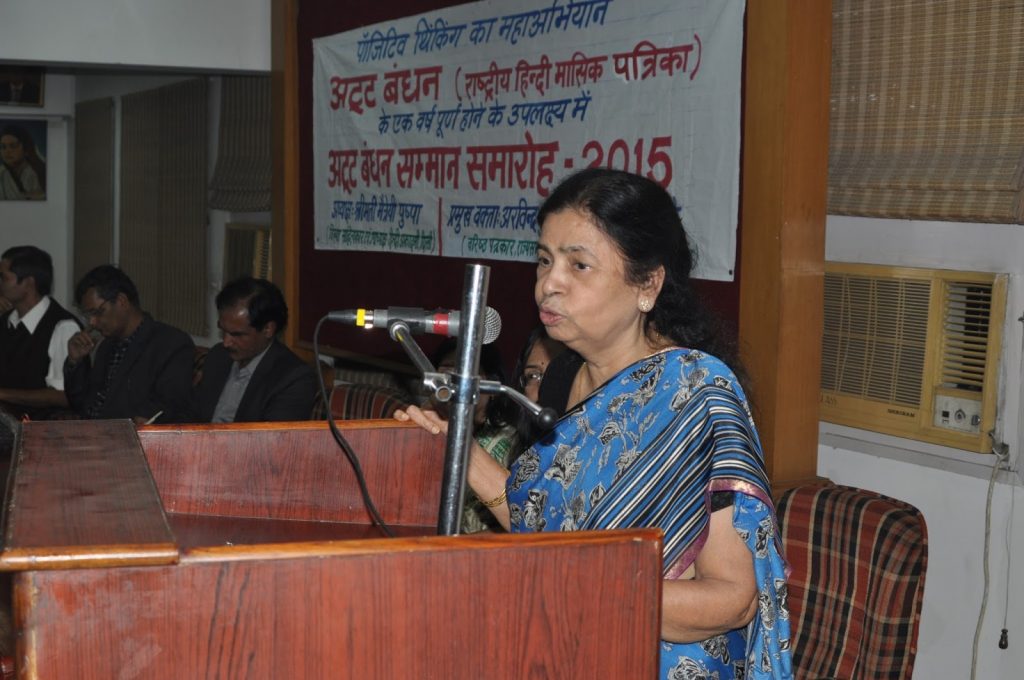 अवसर था हिंदी भवन में हिंदी मासिक पत्रिका “ अटूट बंधन “ के सम्मान समारोह – २०१५ के आयोजन का | कार्यक्रम की मुख्य अतिथि सुविख्यात लेखिका व् साहित्य एकादमी दिल्ली की उपाध्यक्ष श्रीमती मैत्रेयी पुष्पा जी थी व् मुख्य वक्ता अरविन्द सिंह जी( राज्यसभा टी. वी ) व् सदानंद पाण्डेय जी ( एसोसिएट एडिटर वीर अर्जुन ) थे | प्रस्तुत है एक रिपोर्ट