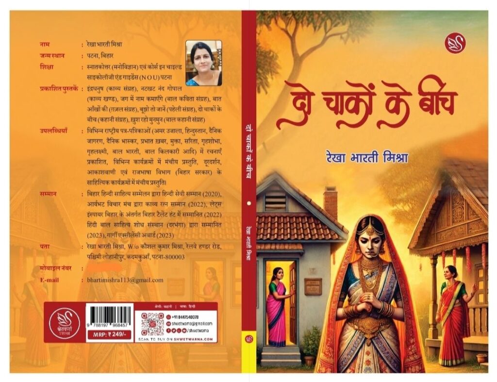 युवा कवि-कथाकार रेखा भारती मिश्रा के श्वेतवर्णा प्रकाशन से हालिया प्रकाशित कहानी संग्रह “दो चाकों के बीच का कवर पेज और नाम अपने आप में ही पूरे कथा संग्रह की बानगी है। संग्रह की सभी कहानियाँ स्त्री जीवन का रेखाचित्र हैं। इसमें शामिल है वह शाश्वत प्रश्न कि मायका या ससुराल लड़की का अपना घर कौन सा है? और इसकी कहानियाँ क्या लड़की का कोई घर नहीं होता के परंपरागत प्रश्न से आगे निकलकर स्त्री के लिए एक नव-नीड़ का निर्माण करती हैं — स्थूल, वैचारिक, या सांकेतिक।