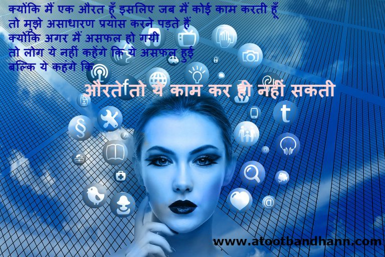 प्रयास January 4, 2020July 19, 2015 by अटूट बंधन क्योंकिमें एक औरत हूँ इसलिए जब मैं कोई काम करती हूँ तो मुझे असाधारण प्रयास करने पड़ते हैं क्योंकि अगर … Read more